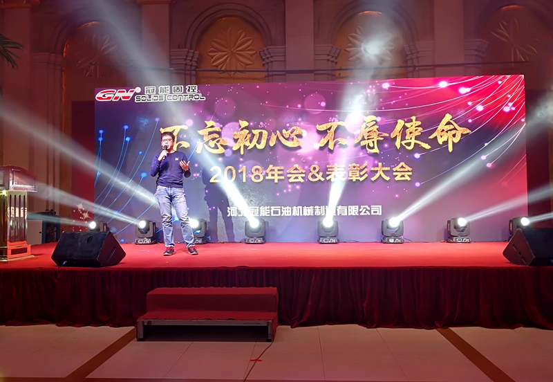 我們總經理,周鵬先先生在年會致辭中說:“我們創立冠能固控的初心就是創造一個世界較好的品牌。經過10年的發展,我們的品質和品牌知名度已經逐步獲得廣大客戶的認可。在國內市場,我們已經與國內三桶油有了深入合作,也是國內各大鉆機廠優選配套供應商。在國際市場,我們已經遠銷世界多個國家和地區,獲得了包括貝克休斯,埃及國家泥服,俄石油,美國客戶等的高度認可。在過去的2017年,宏觀市場并不好的情況下,冠能公司業績獲得了20%的增長。回 初心,我們不辱使命。當然,我們既要為自己取得的成績自豪,更要面向未來。為適應未來的發展需要,公司已經在唐山玉田新購買120畝土地,用于新工廠的建設。在新工廠,我們要打造智能化制造工廠,包括引進機器人,工業物聯網技術,MES現場生產管理系統。通過先進的制造技術,去確保產品品質,提高生產效率。為創建名族品牌貢獻一份力量。”