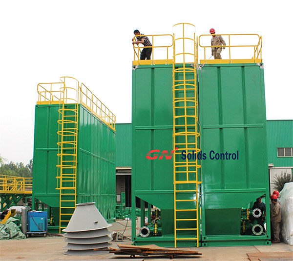 1)8套特殊定制的垂直泥漿罐作為儲漿罐,尺寸2200x2200x5800mm,8套泥漿罐可以裝入4具40英尺的集裝箱,總重量不超過5噸,滿足了直升機的吊裝要求。