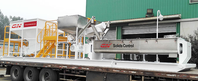 本套系統(tǒng)分為2個階段的固控處理和一套泥漿配置混合系統(tǒng)。鉆井泥漿初步分離采用的是冠能GNZS752型振動篩,200GPM的處理能力、兩片篩網(wǎng)的構(gòu)造用來處理鉆井泥漿中的大顆粒的固體。振動篩處理后的液體通過離心泵輸送給迷你型的沉降離心機(jī)GNLW223進(jìn)一步處理,可達(dá)3800RPM的轉(zhuǎn)速,分離的固體顆粒可達(dá)到2個微米。