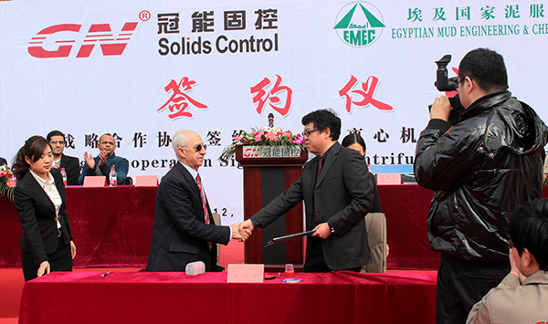 2015年3月12日,冠能固控與埃及國家泥服公司在中國北京冠能公司總部簽署戰略合作協議,為此冠能固控舉辦了盛大了簽約儀式,儀式也包括了一大批離心機的成功交付。