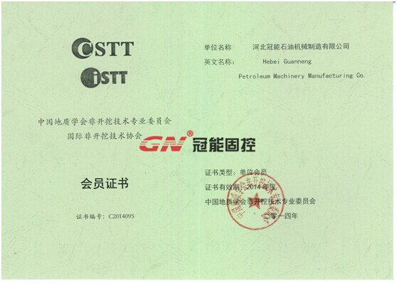 熱烈祝賀河北冠能成功加入CSTT會(huì)員,CSTT-中國地質(zhì)學(xué)會(huì)非開挖技術(shù)專業(yè)委員會(huì)正式成立于1998年,同年加盟國際非開挖技術(shù)協(xié)會(huì)(ISTT),是我國成為26個(gè)國際會(huì)員國之一。目前協(xié)會(huì)掛靠于國土資源部,并得到科技部和建設(shè)部的大力支持。中國地質(zhì)學(xué)會(huì)非開挖技術(shù)專業(yè)委是我國在全國開展非開挖技術(shù)活動(dòng)的合法民間組織,并相繼協(xié)助成立了北京、上海和廣東等地方性非開挖技術(shù)協(xié)會(huì)。